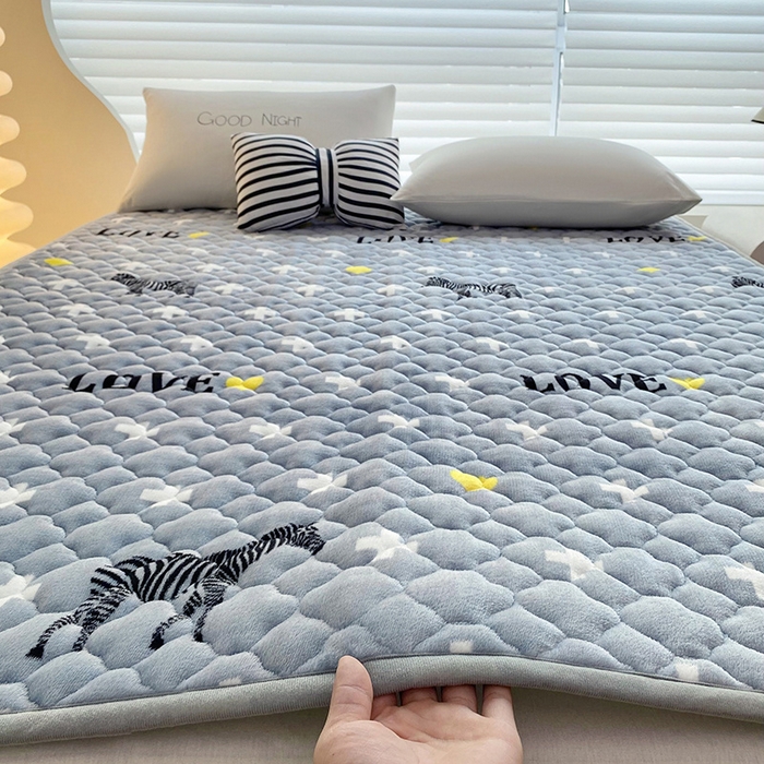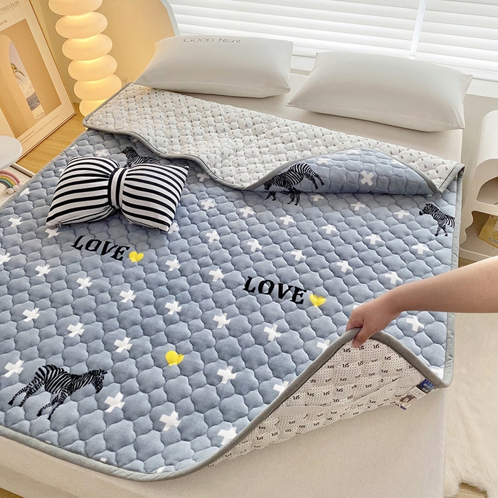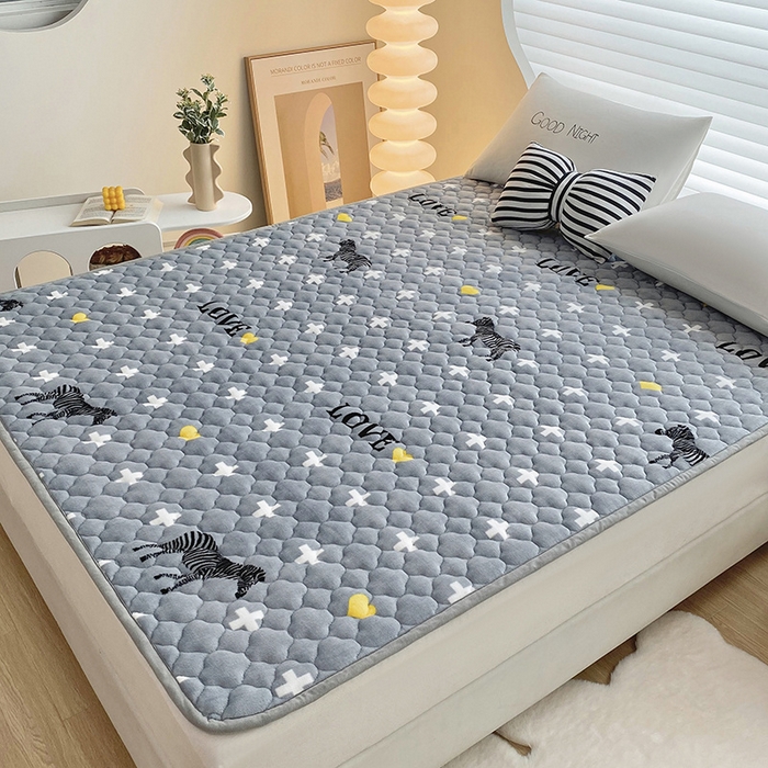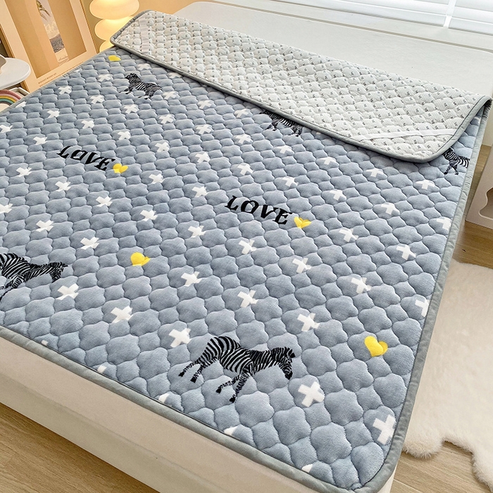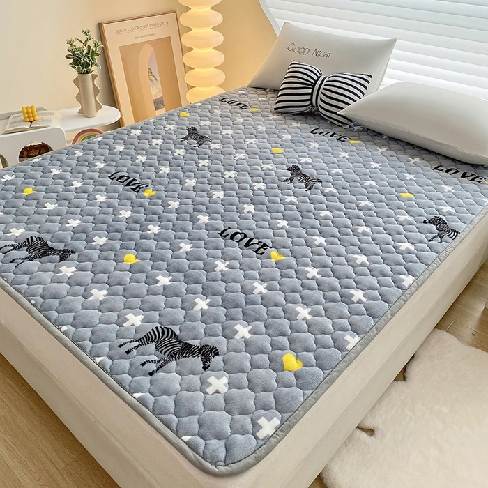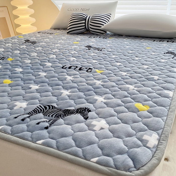 索弗莱家纺 2026新款全消光牛奶绒床垫可水洗机洗床护垫 爱心斑马