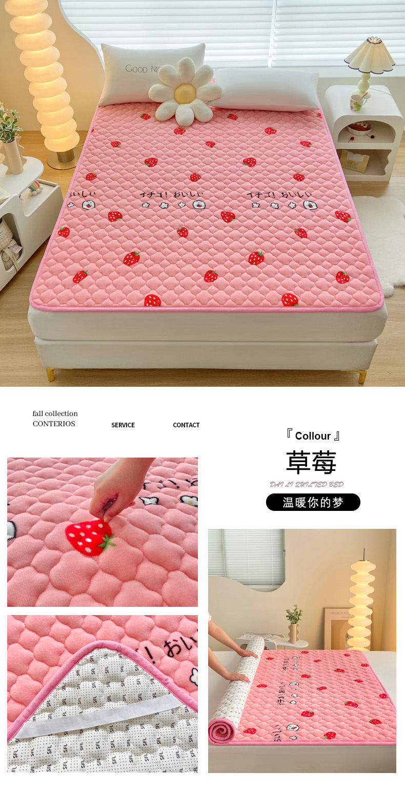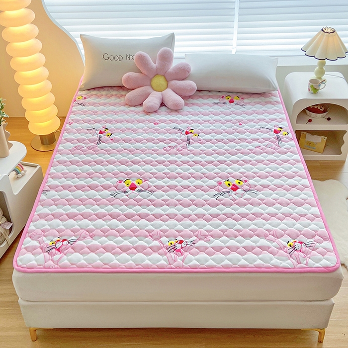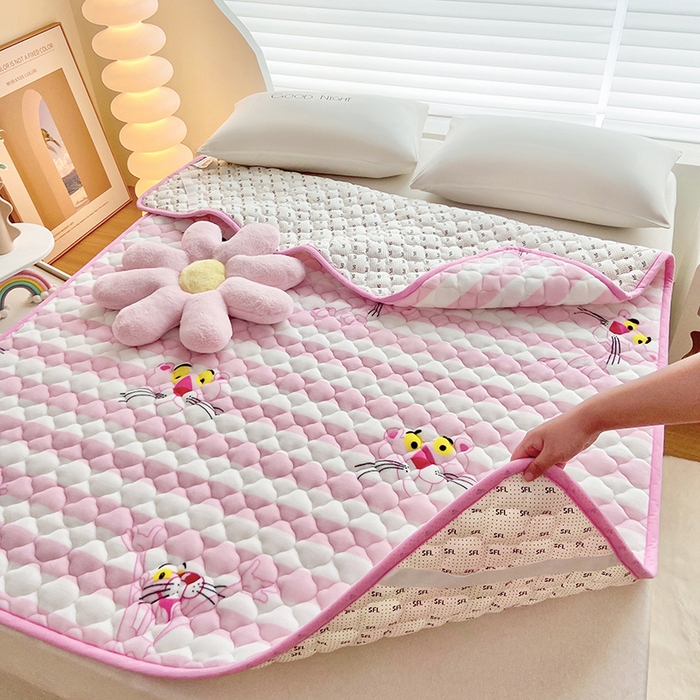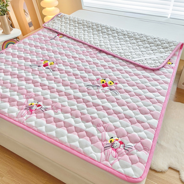 索弗莱家纺 2026新款全消光牛奶绒床垫可水洗机洗床护垫 粉豹