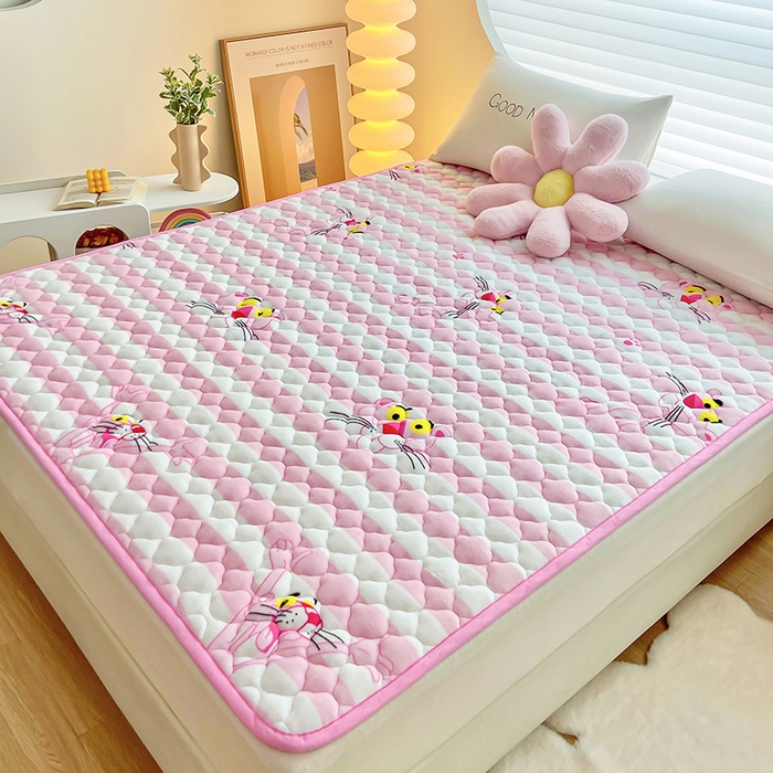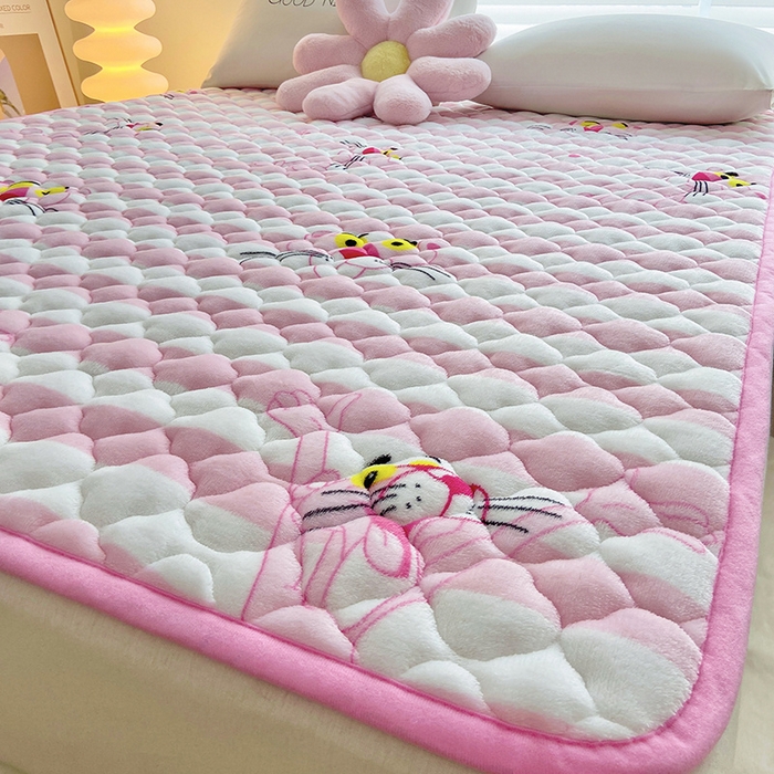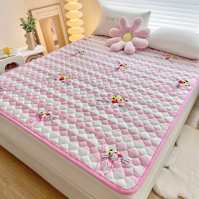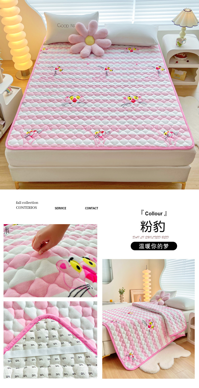 > 索弗莱家纺 2026新款全消光牛奶绒床垫可水洗机洗床护垫 粉豹