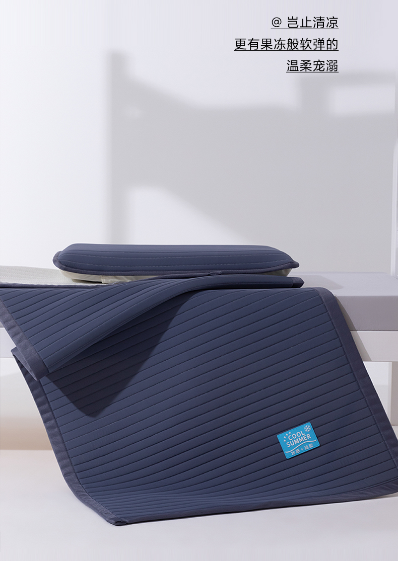> 索弗莱家纺 2026新款 冰感雪珠硅胶软凉席凉感床垫可机洗水洗抗起球不风化-学生床 净海蓝