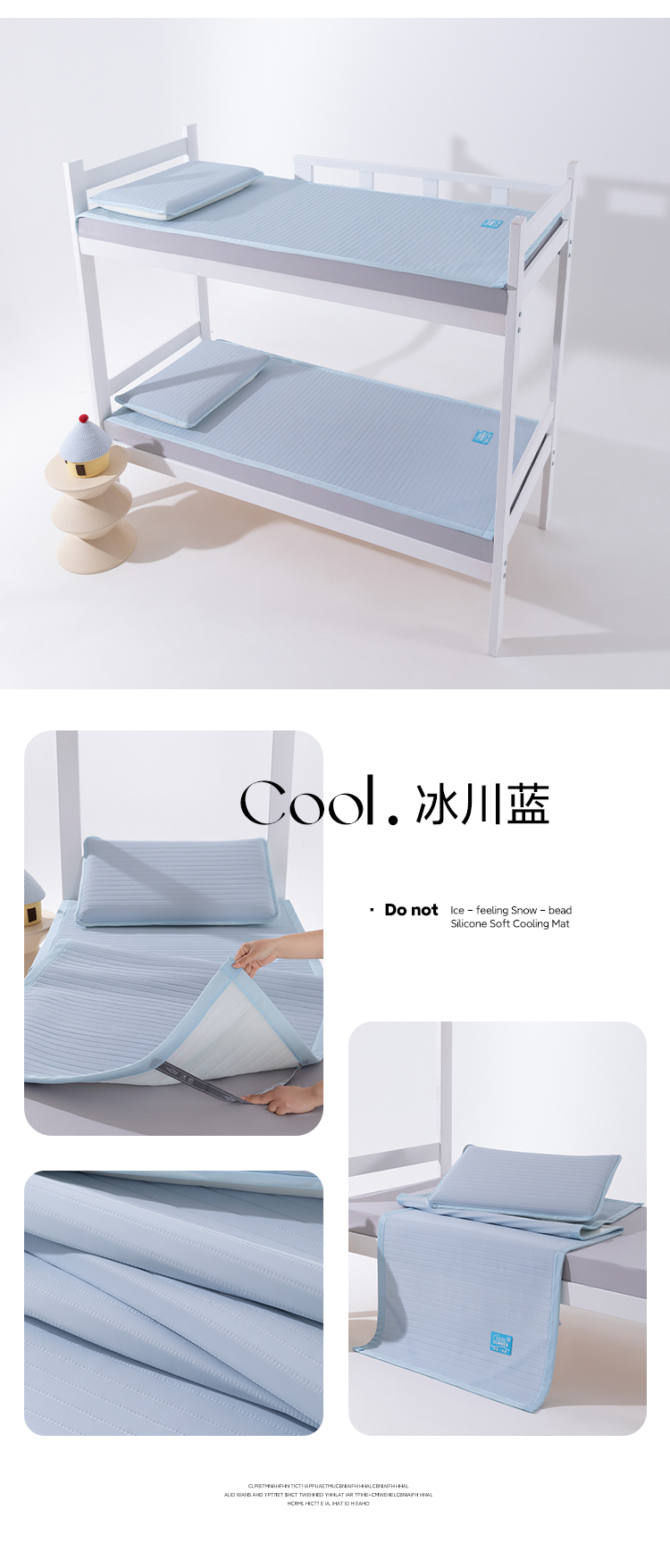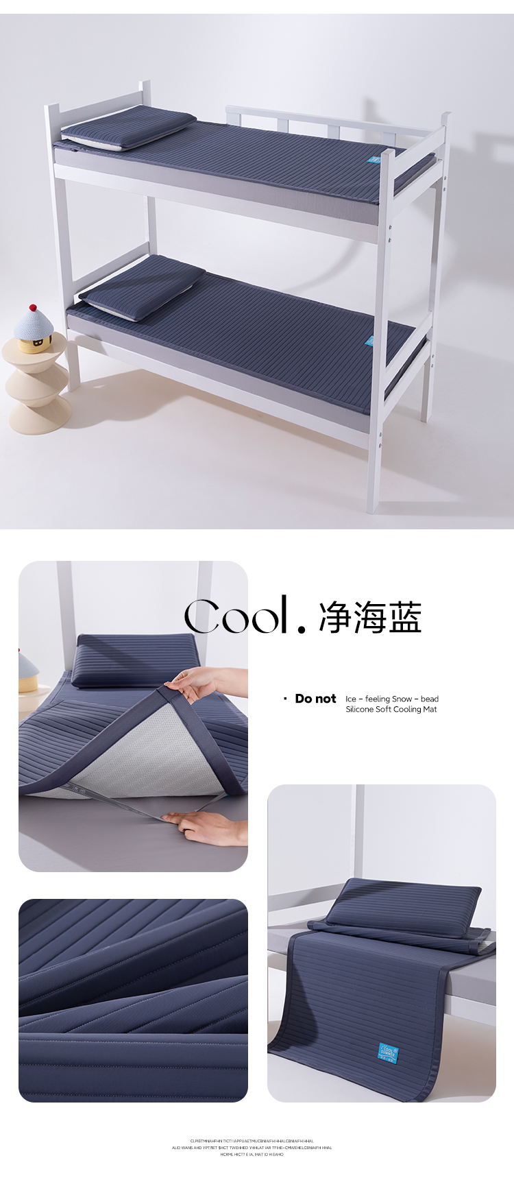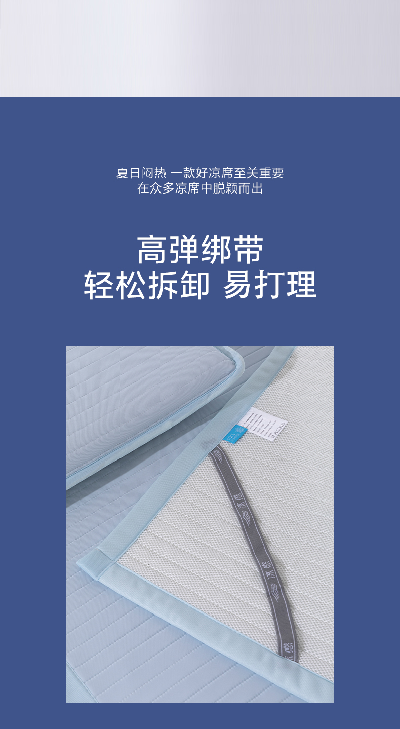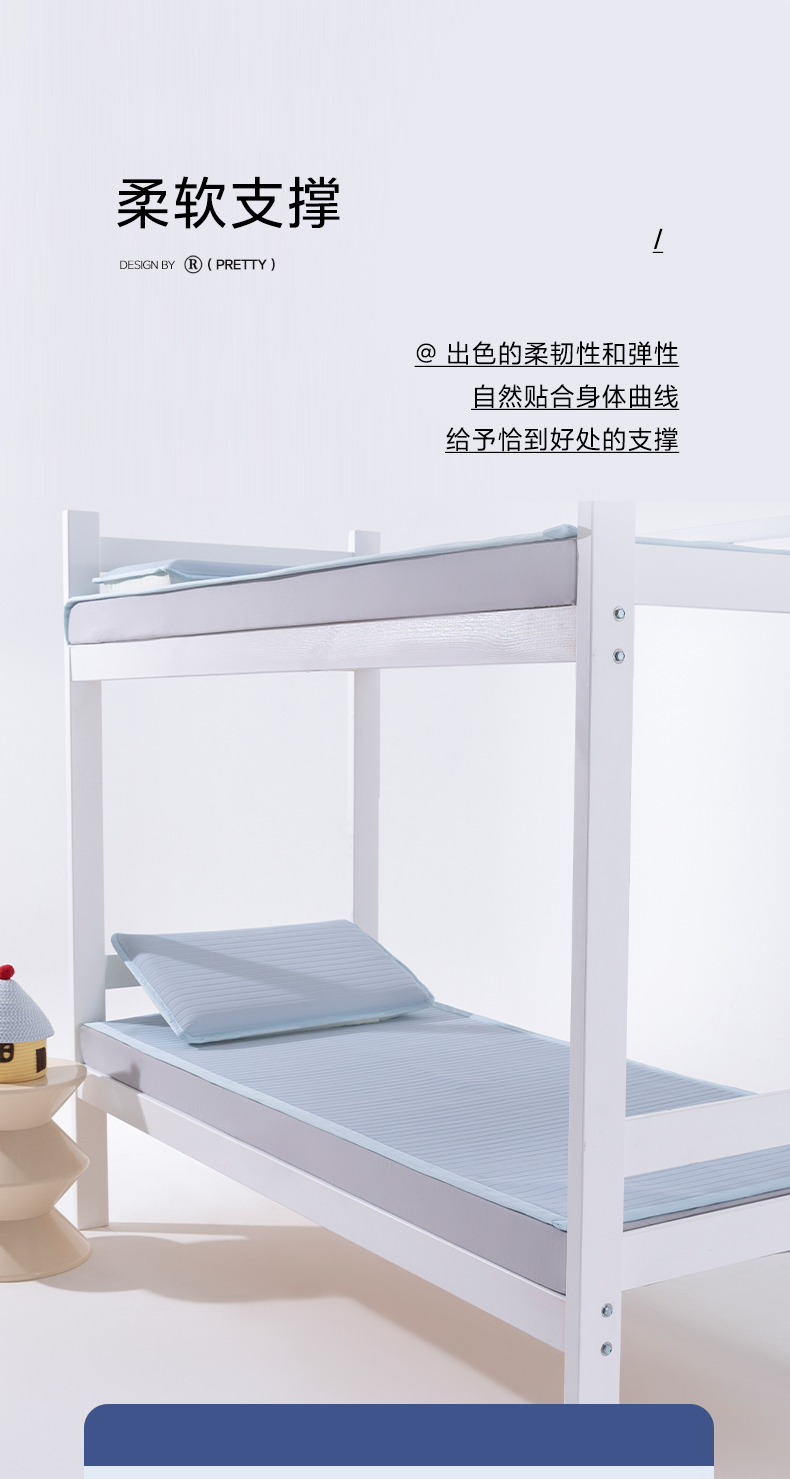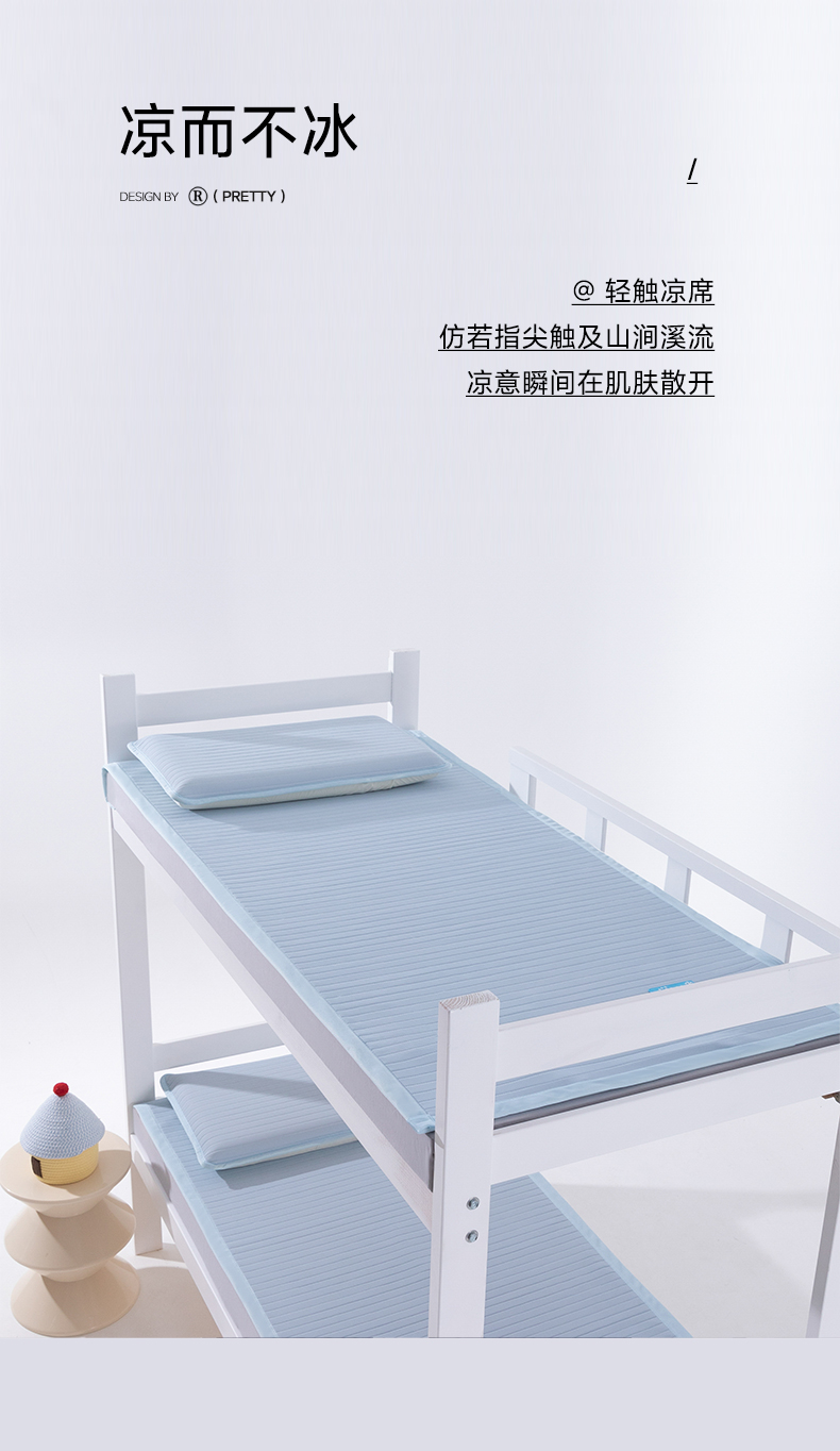 > 索弗莱家纺 2026新款 冰感雪珠硅胶软凉席凉感床垫可机洗水洗抗起球不风化-学生床 冰川蓝
