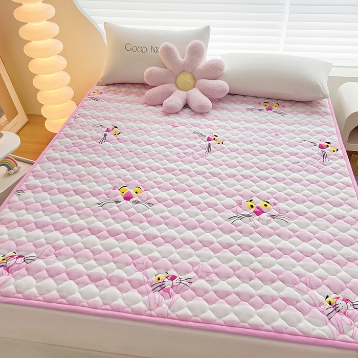 索弗莱家纺 2026新款全消光牛奶绒床垫可水洗机洗床护垫 粉豹
