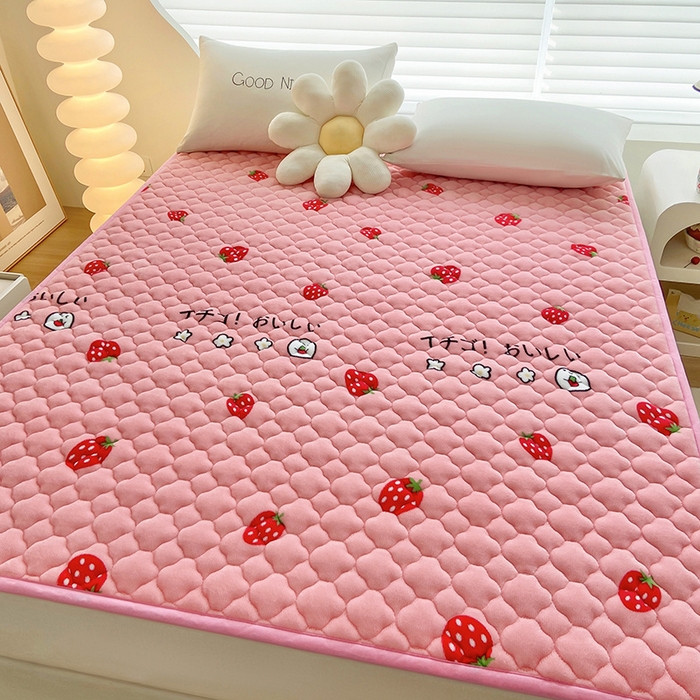 索弗莱家纺 2026新款全消光牛奶绒床垫可水洗机洗床护垫 草莓
